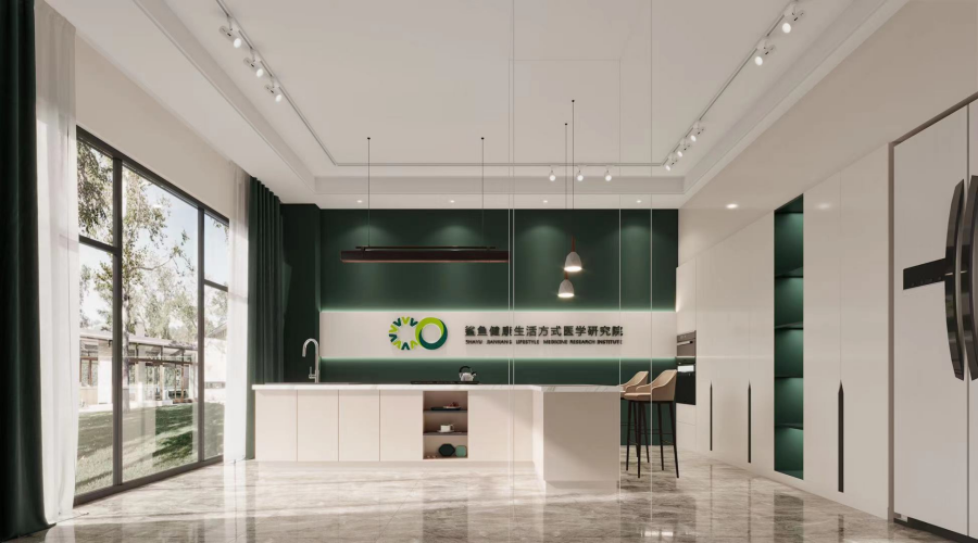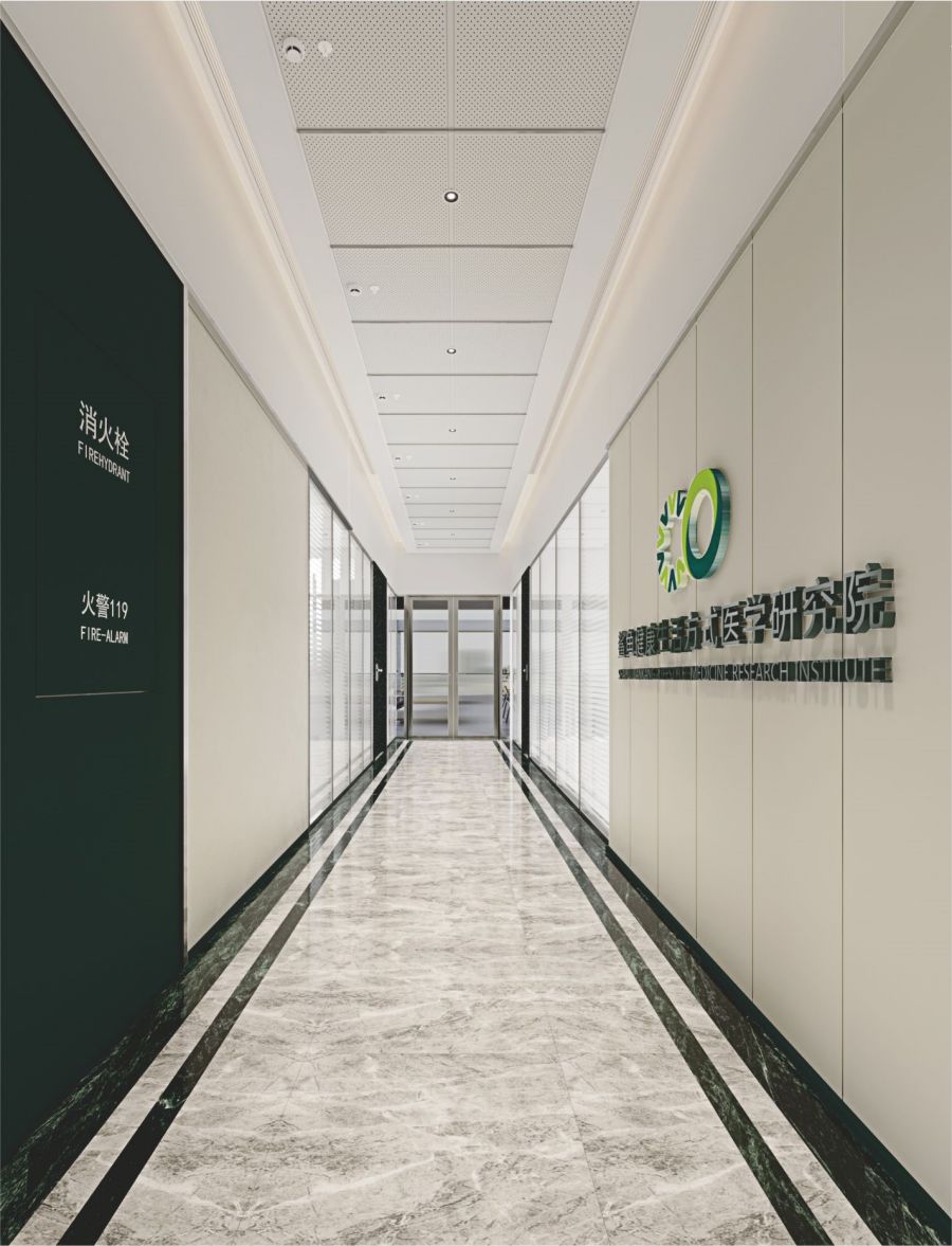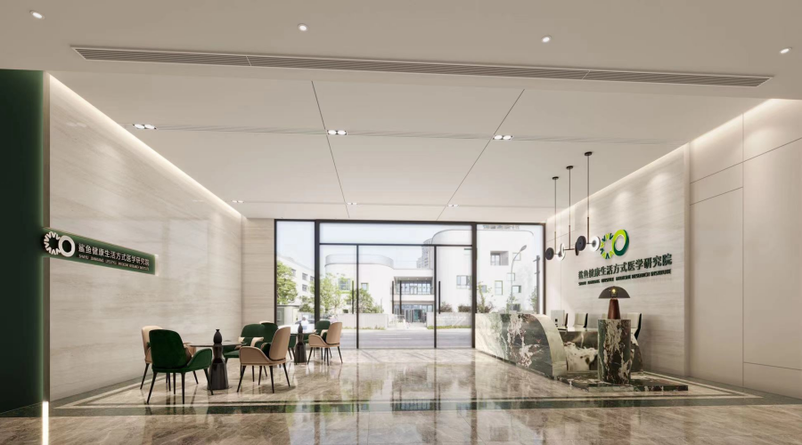 鯊魚健康生活方式醫(yī)學(xué)研究院位于湘潭昭山,項目總面積2100㎡,共兩層,一層為健康生活方式醫(yī)學(xué)研究院以及展示接待區(qū),二層為辦公區(qū)域。