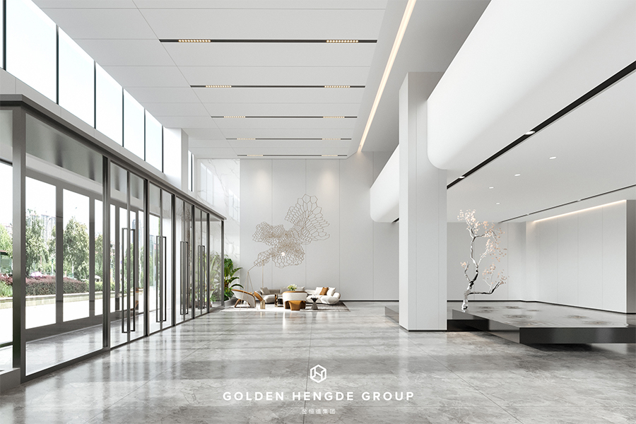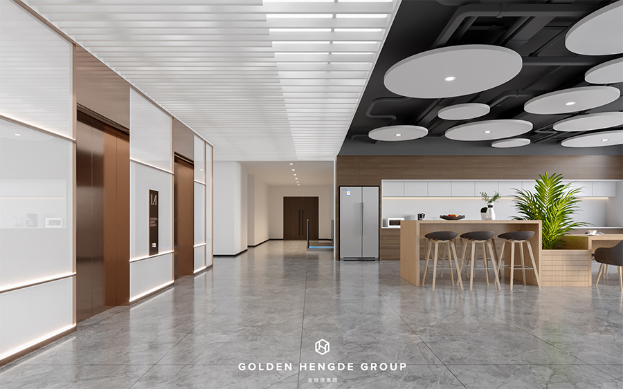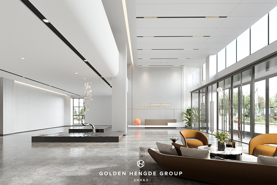 對(duì)于一個(gè)醫(yī)用LED照明產(chǎn)品制造商的辦公空間,一個(gè)明亮開闊的前廳是屬于自己的一張名片。從通透的玻璃門進(jìn)入前廳后,挑空的大堂及整體淺色調(diào)的控制從視覺上讓整個(gè)前廳變得更加明亮寬敞,同時(shí)設(shè)有的會(huì)客區(qū)域滿足了等候及接待的需求,大廳中央設(shè)置了一組仿水池的端景設(shè)計(jì),不僅豐富了空間的層次,還提升了空間的高級(jí)感。