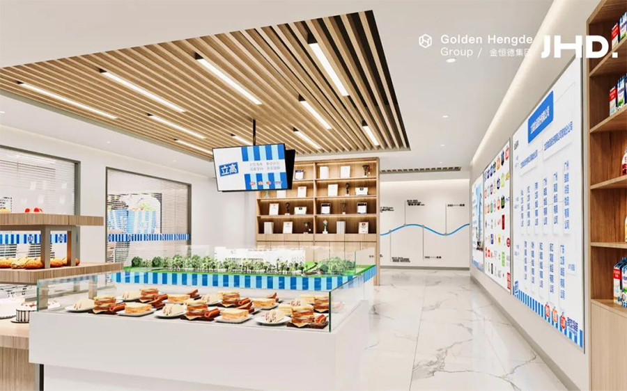 立高食品股份有限公司 ( 簡稱:立高食品 Ligao Foods,股票代碼:300973 ) 是一家集烘焙食品原料及冷凍烘焙食品研發(fā)、生產(chǎn)、銷售于一體的大型股份制上市企業(yè)。公司總部位于廣州,下屬的立高食品、奧昆食品、昊道食品(美煌)業(yè)務(wù)遍及烘焙食品原料、冷凍烘焙食品及烘焙醬料等領(lǐng)域,經(jīng)過二十余年的沉淀與積累,立高已成長為廣大客戶信賴的烘焙有名企業(yè)。2021 年公司營業(yè)收入達(dá) 28.17億元,同比增長 55.66%。2022年立高集團(tuán)委托金恒德助力打造中部地區(qū)最大的集售展和辦公為一體的體驗(yàn)中心。