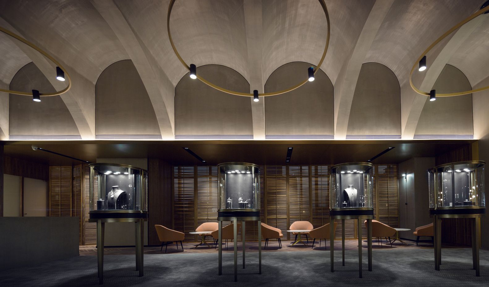 4、關(guān)于奢飾品珠寶展柜與空間材料的選擇、色彩的處理、燈光的選擇與照明模式、造型選用等要素也是十分重要的,其實,這些目的主要是對客戶的視覺產(chǎn)生一定的感染力,心靈上達到一個震撼的效果,從而產(chǎn)生對產(chǎn)品與店面的深刻印象,這些因素還是取決于品牌的文化的表達與客戶群體定位等等。