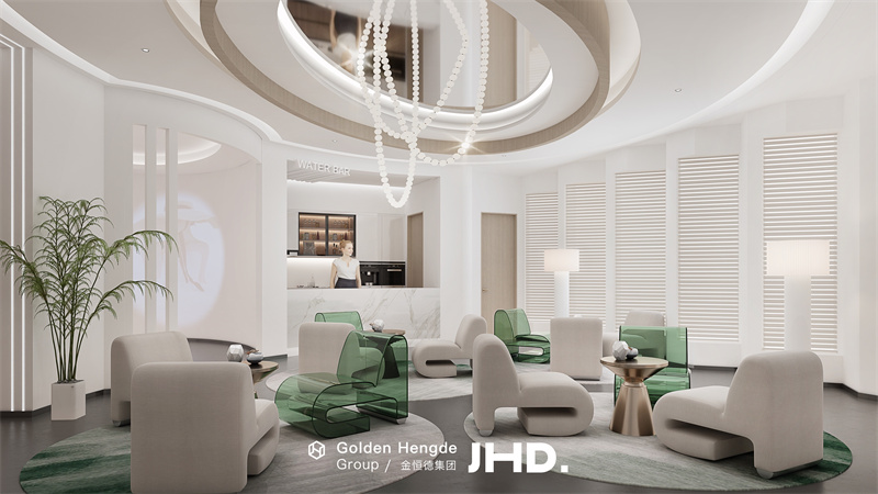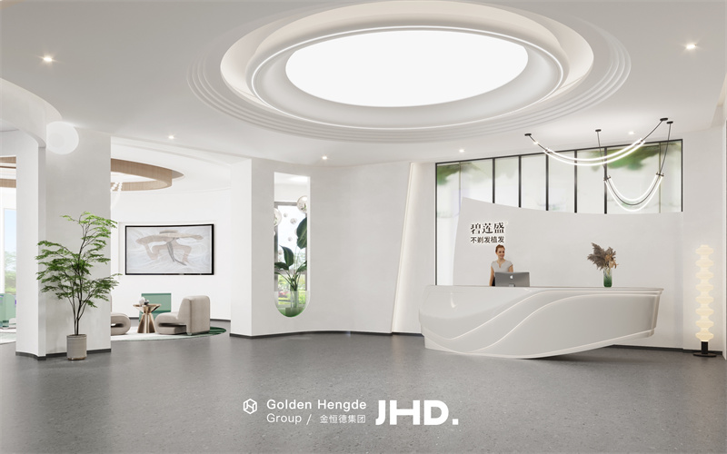 陽光、沙灘、碧藍的大海及蓬勃生長的熱帶植物,這是海南這塊土地給人的第一印象,結(jié)合碧蓮盛品牌特性,在此次的設(shè)計中我們以生命力為主題,并志在把室外的風(fēng)光及力量引入室內(nèi),形成內(nèi)外一體,人與自然,經(jīng)營與環(huán)境的相互融合,給到客戶一個和諧,平靜,松弛的空間環(huán)境,在此間又有一種春風(fēng)化雨,潤物無聲,破土發(fā)芽,萬物生長的感官體驗。
